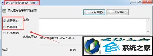 5:5、接下来,找到窗口中的另外一项关闭程序兼容性助理并双击,同样将未配置更改为已启用就可以了。