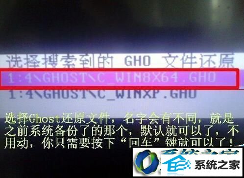 5、按下“回车”键。(选择Ghost还原文件,名字会有不同,就是之前系统备份了的那个,默认就可以了,不用动,你只需要按下“回车”键就可以了!)